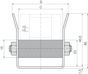 Anchuras interiores disponibles Bi: 15 a 50 mm
