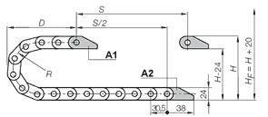 Series 15 - cadena portacables con sistema de apertura tipo cremallera a lo largo del radio exterior