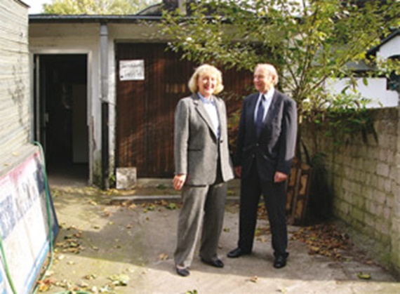 Los fundadores de la empresa Günter y Margret Blase frente a su "garage doble" de 1964