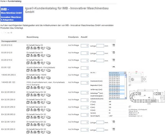 Los clientes de igus® ahora tienen la opción de crear catálogos on line de acuerdo a sus propias necesidades de entre los más de 100.000 componentes de la gama de productos igus®. Una vez que el usuario ha sido creado y aceptado por el sistema de igus®, se podrá solicitar acceso para cualquier número de empleados de una empresa. Este será gestionado por el sistema "myigus" del cliente ya existente.