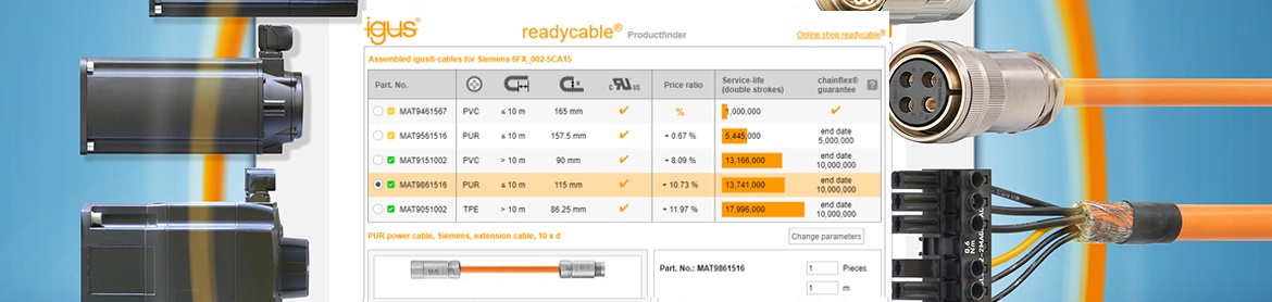 Herramienta de búsqueda de productos readycable® con cálculo inmediato de la vida útil de los cables confeccionados seleccionados: