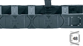 Cadenas y tubos portacables con apertura por el radio interior y exterior, desde la izquierda o la derecha