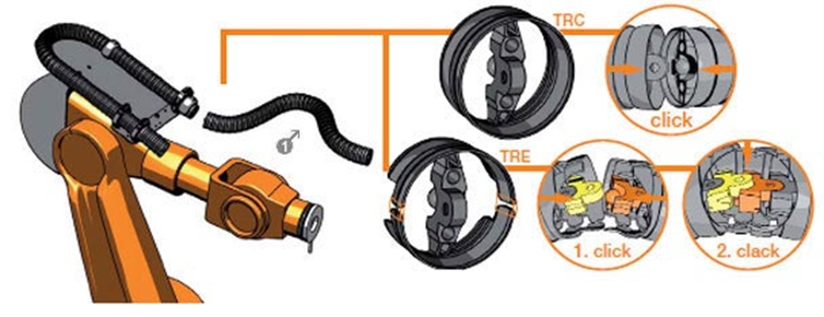 Montar el elemento de conexión con descarga de tensión en el extremo móvil y fijar el triflex® R.