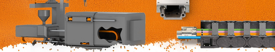 Cuando en el suministro de energía a máquinas para el procesamiento de plástico, las cargas altas, la precisión y las temperaturas altas son importantes. Las cadenas portacables de plástico en líneas de láminas sopladas, máquinas de moldeado por inyección o extrusoras protegen los cables y mangueras. Incluso con rellenos pesados, las cadenas portacables plásticos muestran sus ventajas: