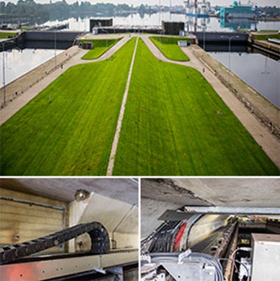 compuertas correderas de 60 m de largo, 10 m de ancho, 20 m de alto y unas 2000 toneladas