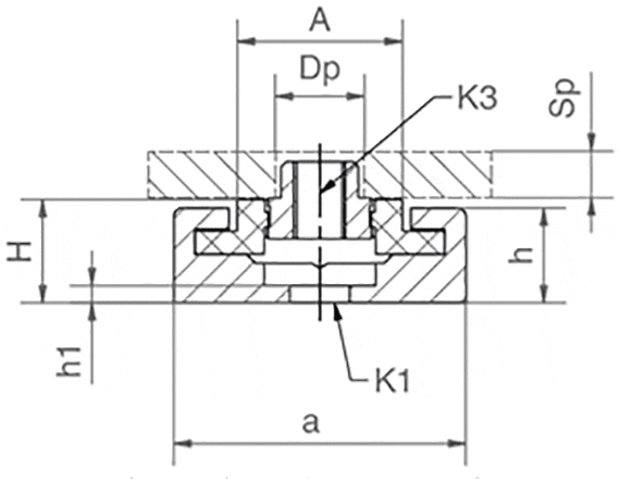 | Nº Nº | H | A | C | C1 | C2 | A2 | H2 | K2 | K3 | K4 | Sp mín. | Dp Ø mín. | Peso |