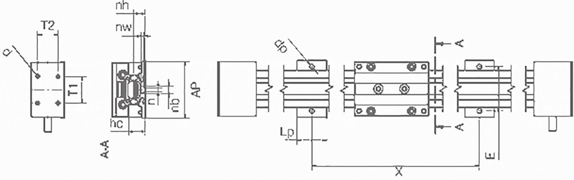 | Nº de art. | lt ±0,3 | sg | ha | lz | l2 | d2 | X | E ±0,2 | AP -l | LP | dp | n | nb | nw | nh | T1 | T2 | d |