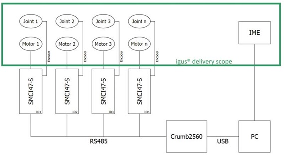Motores paso a paso igus® (cantidad en función de la cantidad de ejes del brazo)