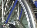 En esta bicicleta, la conexión entre la rueda trasera y el cuadro es asegurada mediante cabezas articuladas libres de mantenimiento.