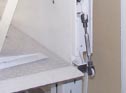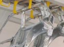 Polymer rod end bearing in a smoke extraction system at a meat factory.