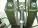 Dispositivo de bloqueo en una máquina para el procesamiento de billetes de banco: la articulación doble permite todos los grados de libertad necesarios y soporta a la vez la fuerza de tracción.
