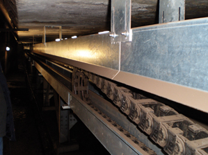Cole is transported in this handling facility over a distance of 200 meters. Strong pollution and coal dust were responsible for defects at the energy chain and the inserted cables in the past. This problem could be eliminated by the use of insensitive igus® e-chains® and increased the availability of the handling facility.