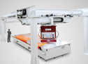 This high-frequency welding apparatus moves in a working area of 8 x 2,5 metres and rotates about 360 degrees.