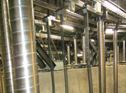 Six transport trolleys move material through the individual stations in this galvanization plant.